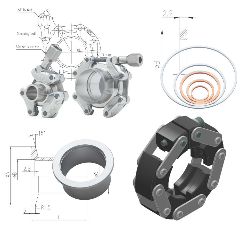 Widest selection of chain clamps available in steel and high-temperature plastic for vacuum and pressure applications.